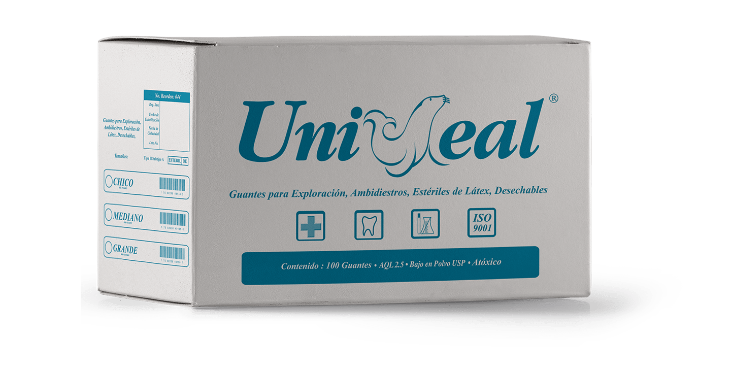 *Sujeto a Disponibilidad. 100 Guantes UniSeal Estéril Látex empacados individualmente en bolsa de polietileno por caja.