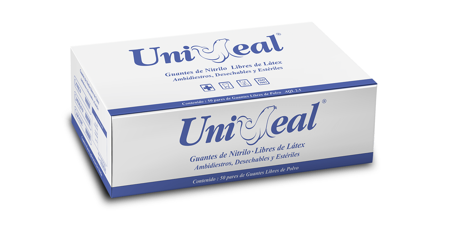 *Sujeto a Disponibilidad. 100 Guantes UniSeal Estéril Nitrilo empacados por par en bolsa de polietileno por caja.